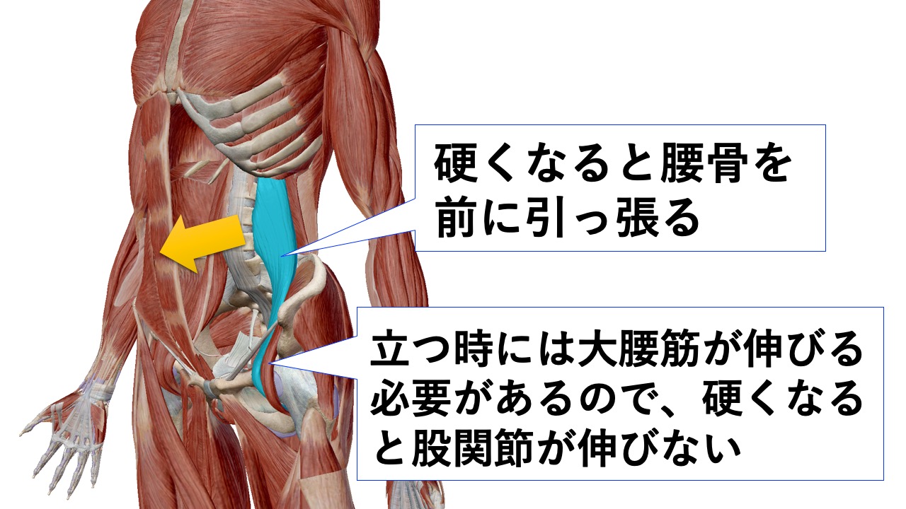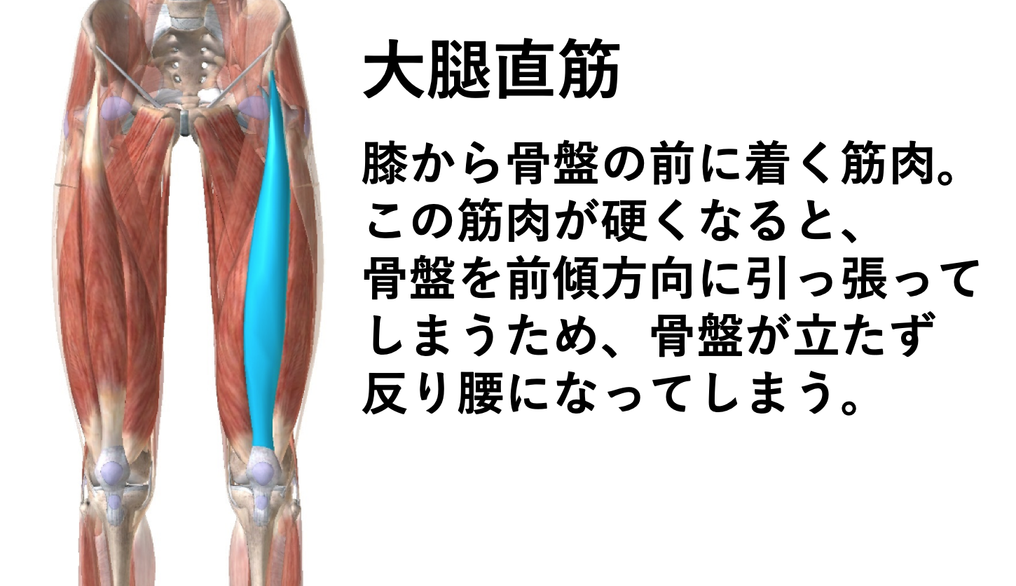 さらに硬くなった結果伸びなくなることで反り腰を誘発する。