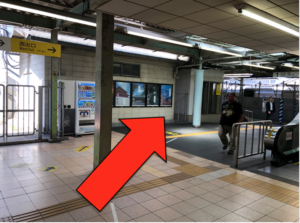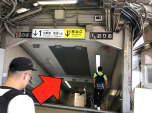 1京阪京橋駅片町口改札を出ると右手にエスカレーターが見えます。
